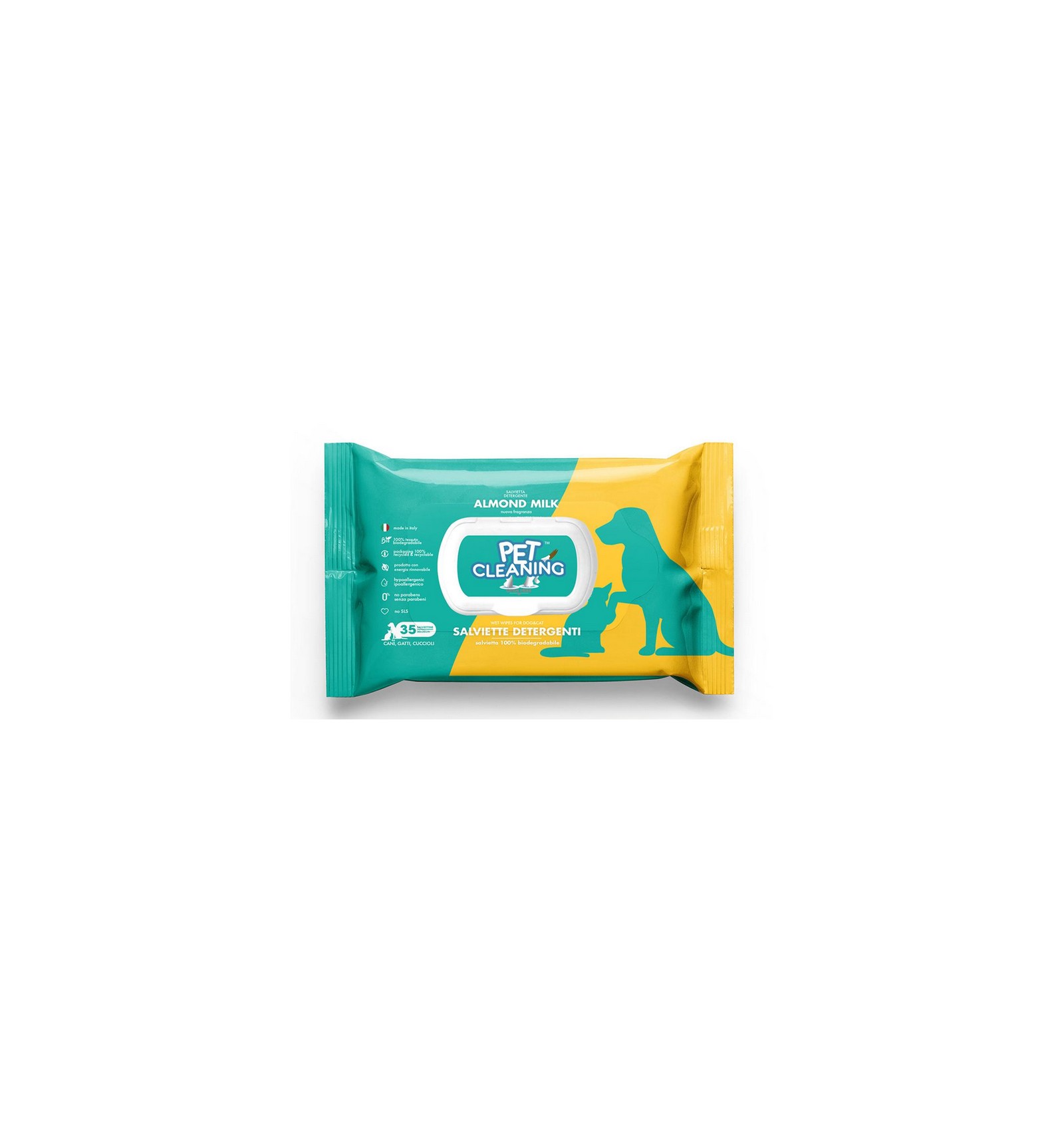 Os toalhetes húmidos Pet Cleaning são ótimos para uma limpeza prática, rápida e eficaz de cães e gatos. Seja para uso doméstico, em viagem ou no exterior, estes toalhetes densos são ideais para se ter sempre à mão e limpar o pelo e patas do animal, removendo o mau odor e limpando a sujidade, mesmo do focinho, nariz e orelhas. A sua fórmula natural e suave refresca, nutre e protege o pelo e pele do animal, sendo indicada mesmo para os mais novos.