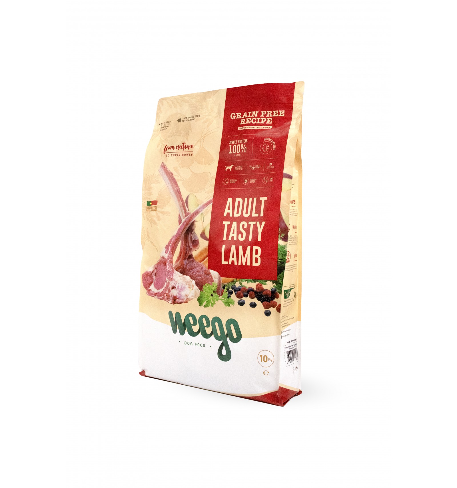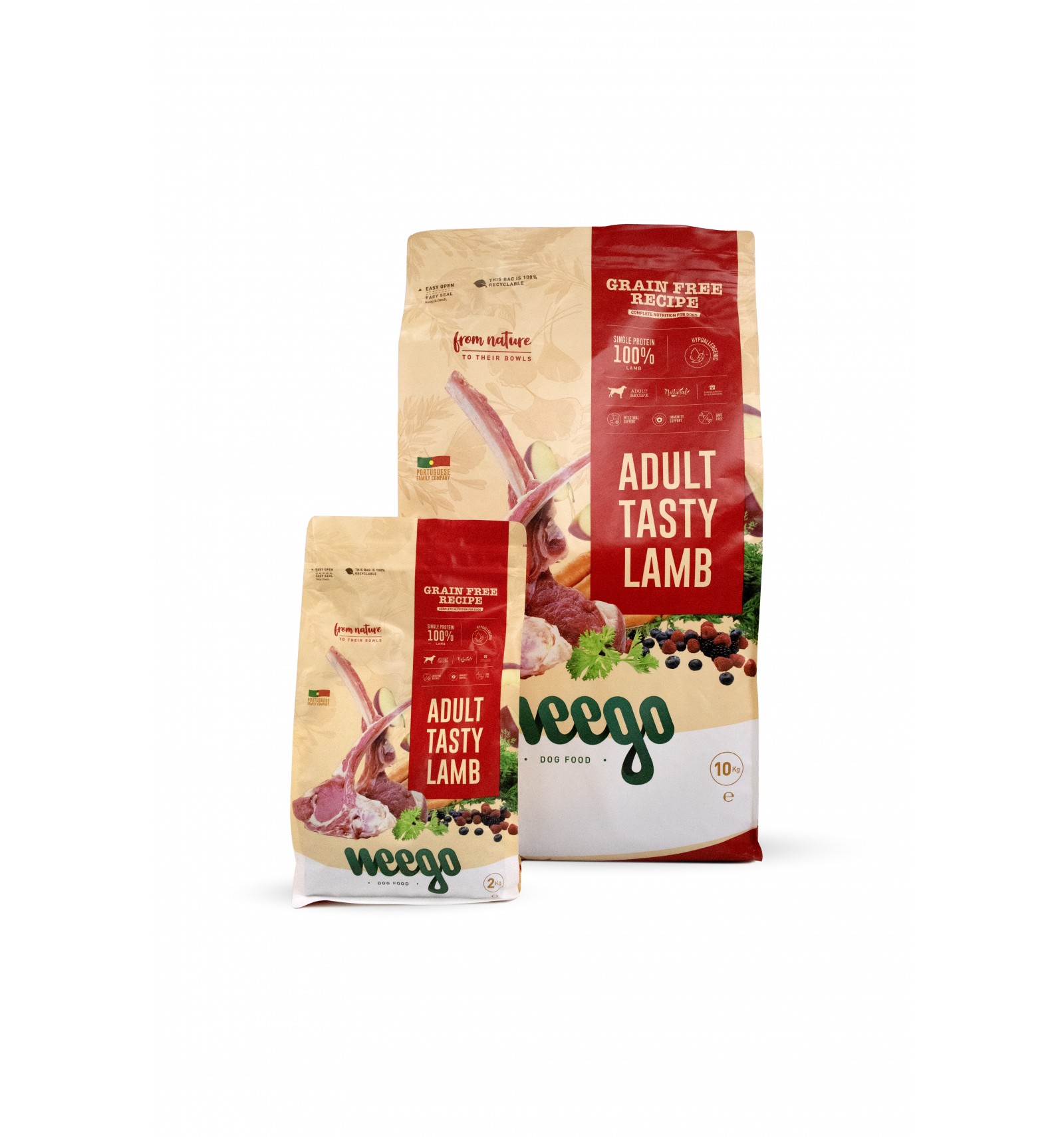 Borrego hidrolisado (mín. 30%), batata, leguminosas (lentilha castelhana mín. 6%), batata doce, gordura de aves, farinha de alfarroba (mín. 5%), levedura de cerveja Saccharomyces cerevisiae, cenoura, abóbora, complexo vitamínico-mineral, extrato de yucca schidigera, óleo de salmão rico em Ω3, lignocelulose, complexo condroprotetor (cloridrato de glucosamina 1250 mg, sulfato de condroitina 850 mg/kg, extrato de mexilhão de lábios verdes Perna canaliculus), frutos silvestres, manano-oligossacarídeos, fruto-oligossacarídeos, ervas botânicas (calêndula, sálvia, feno-grego, endro, tomilho, flor de marigold, rosa mosqueta), taurina, prebióticos, extratos de plantas (frutas vermelhas, frutas cítricas, sementes de cardo mariano, sementes de chá verde, alecrim), antioxidantes naturais, probióticos (E. faecium NCIMB 10415 15x106 UFC), L-carnitina.