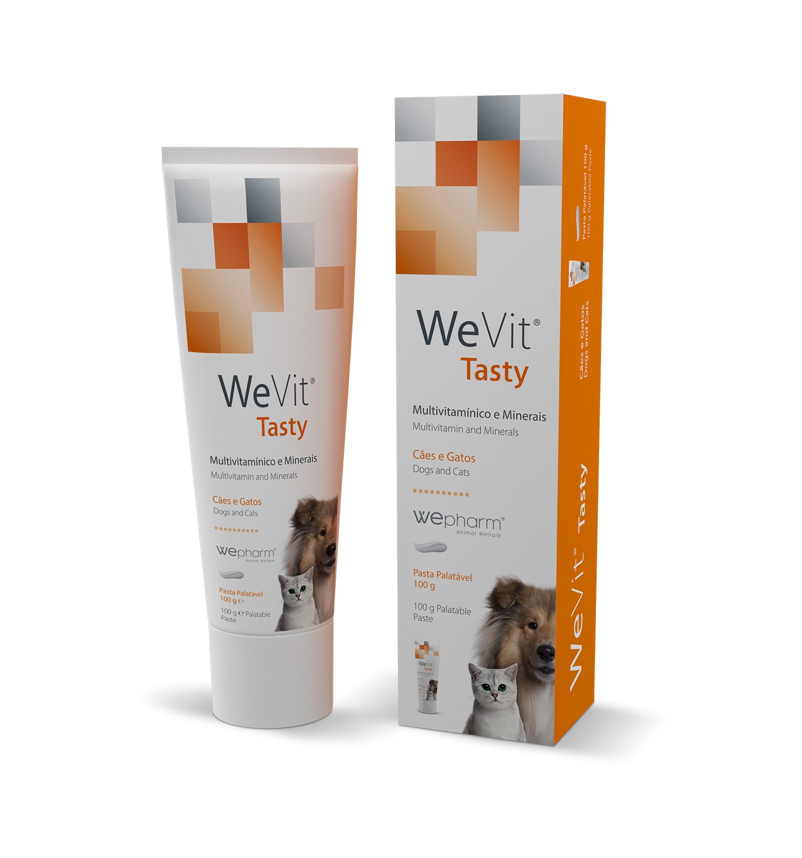 WeVit Tasty® é uma pasta palatável de digestão fácil, especialmente importante em situações de anorexia ou perda de apetite, relacionadas com convalescença ou após doença, gestação, lactação, crescimento, assim como em qualquer situação de aumento das necessidades nutricionais (desporto, trabalho).